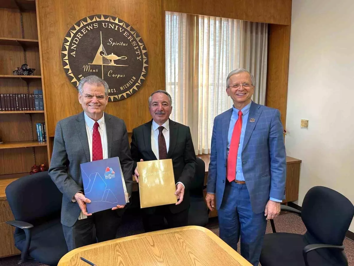 7. Uluslararası Ağrı Dağı ve Nuh'un Gemisi Sempozyumu'nun sponsorları arasında yer alan Andrews Üniversitesi'ni ziyaret etmekten dolayı memnun olduklarını belirten Prof. Dr. Karabulut, 2025 Yılında yapılacak 8. Uluslararası Ağrı Dağı ve Nuh'un Gemisi Sempozyumu'nun iki üniversitenin ortaklığında düzenlenmesi amacıyla iş birliği protokolü yapıldığını söyledi.