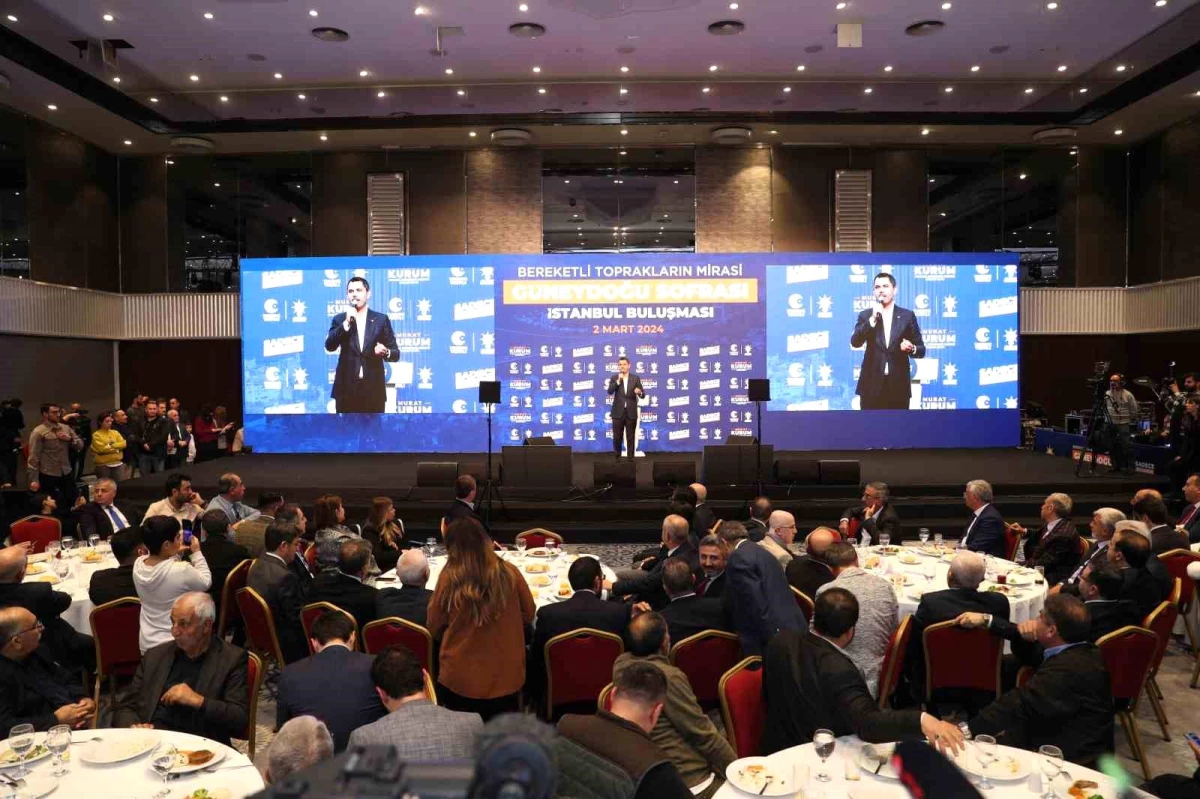 AK Parti İstanbul Büyükşehir Belediye (İBB) Başkan Adayı Murat Kurum, Bahçelievler'de düzenlenen Bereketli Toprakların Mirası Güneydoğu Sofrası İstanbul Buluşması programında vatandaşlarla bir araya geldi. Programa Kurum'un yanı sıra Hazine ve Maliye Bakanı Mehmet Şimşek, Cumhurbaşkanı Başdanışmanı Mustafa Akış, bakan yardımcıları, milletvekilleri, belediye başkanları ve çok sayıda vatandaş katıldı. Programda ilgiyle karşılanan Kurum vatandaşlarla sohbet edip hatıra fotoğrafı çektirdi.