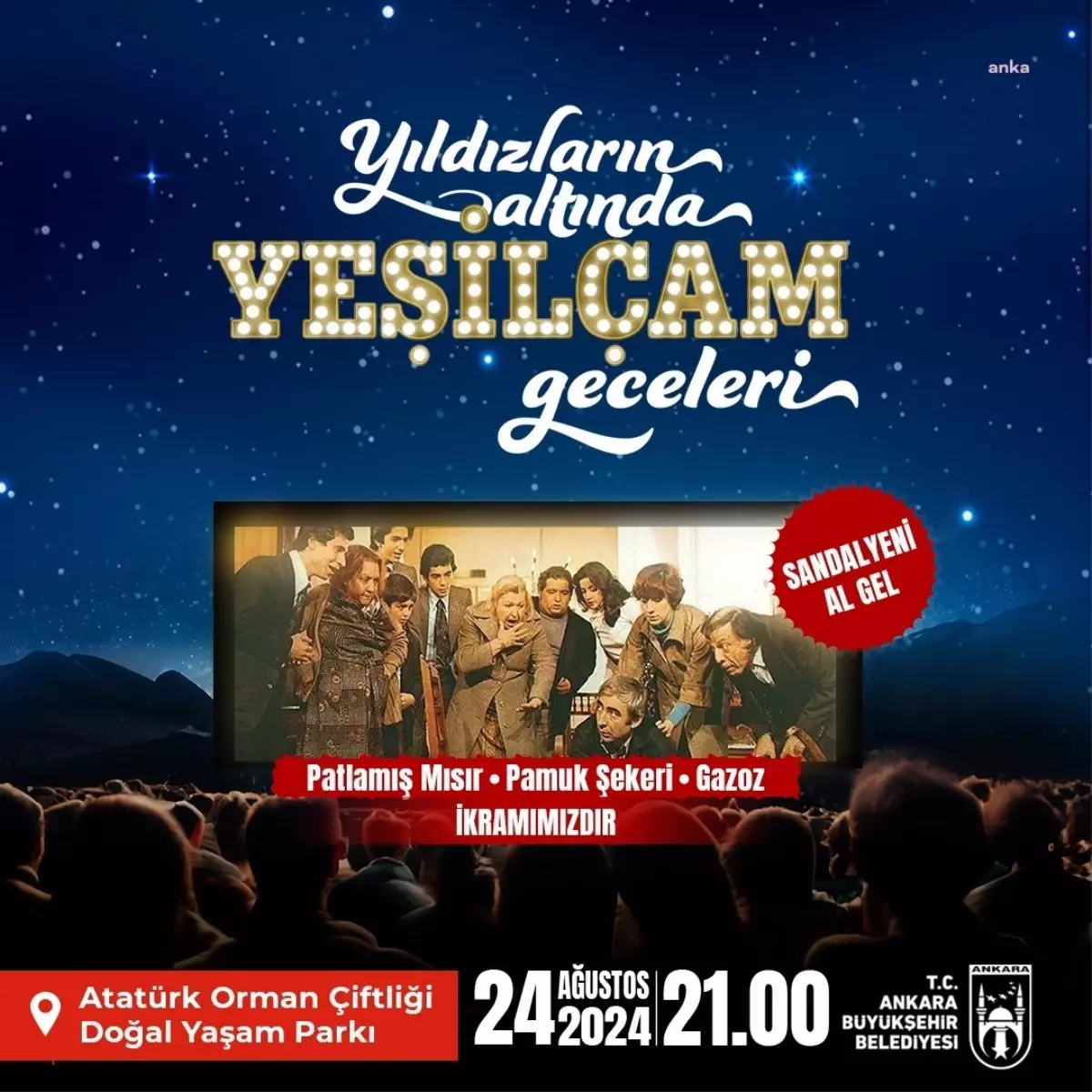 Ankara Büyükşehir Belediyesi, Açık Hava Sinema Günleri ile Başkentlileri nostalji yolculuğuna çıkarıyor. 'Sandalyeni Kap Gel' sloganıyla düzenlenen 'Yıldızların Altında Yeşilçam Geceleri'nde 24 Ağustos Cumartesi akşamı saat 21.00'de Atatürk Orman Çiftliği Doğal Yaşam Parkı'nda, Hababam Sınıfı seyirciyle buluşacak. Başkentliler, son gösterimin yapılacağı 14 Eylül'e kadar her cumartesi saat 21.00'de farklı bir film ile buluşmaya devam edecek.