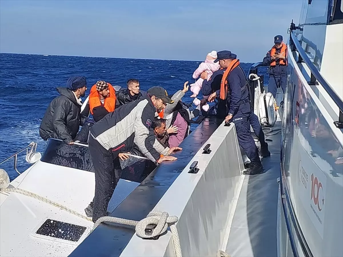 Fiber tekne içindeki 2'si çocuk 19 düzensiz göçmen, Sahil Güvenlik ekiplerince kurtarıldı.