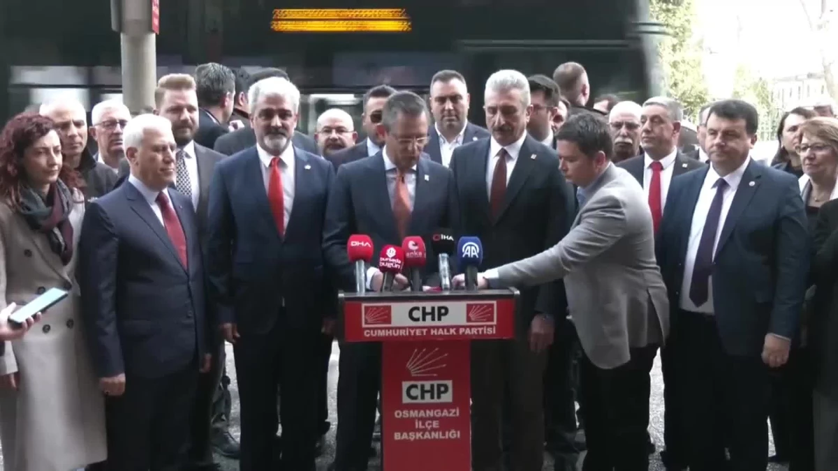 CHP Genel Başkanı Özgür Özel, Bursa'da CHP Osmangazi İlçe Başkanlığı'nı ziyaret etti. Özel, ziyaretin ardından ilçe başkanlığı önünde şu açıklamayı yaptı: