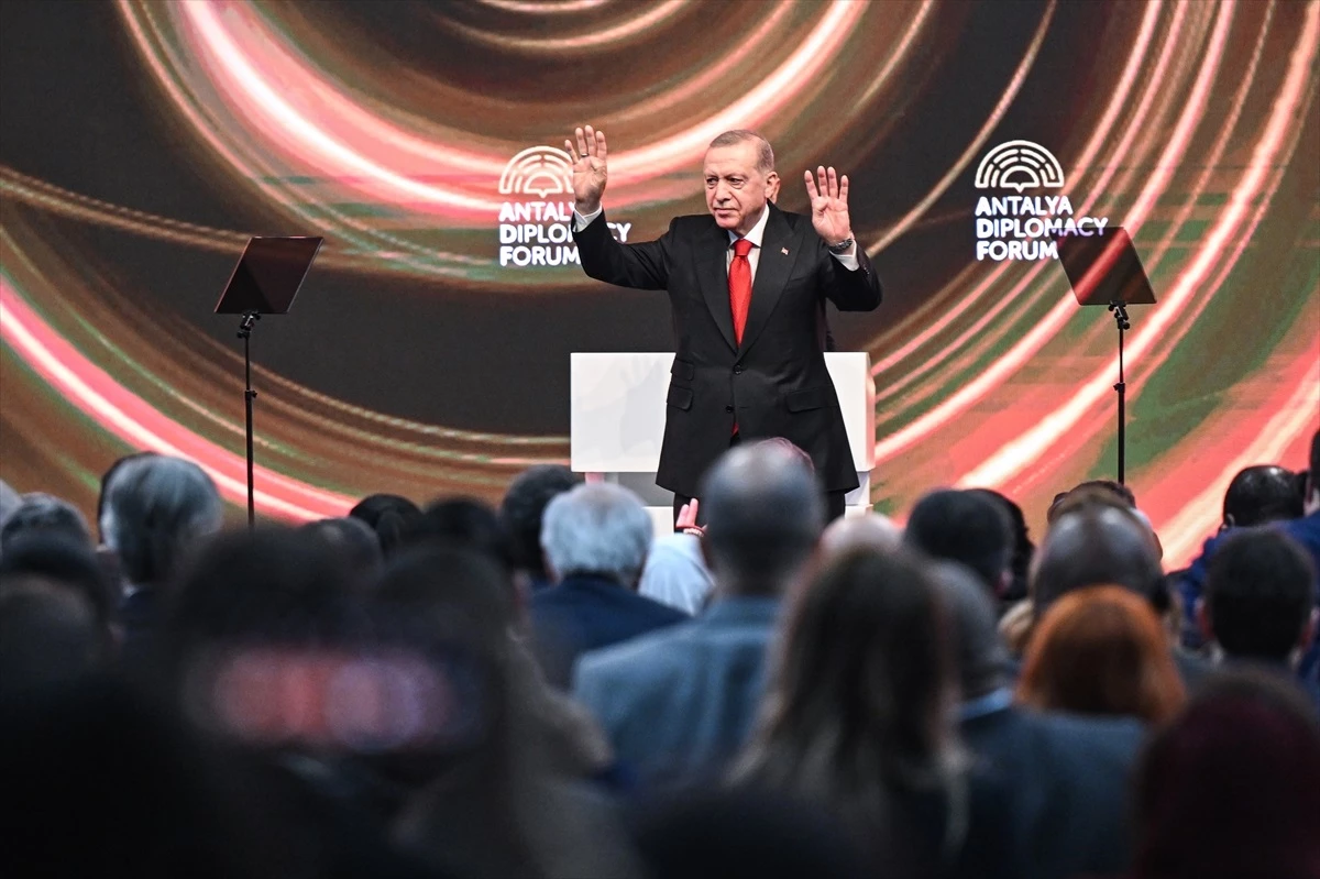 Antalya Diplomasi Forumu'nun 3. buluşması münasebetiyle bir arada olmaktan büyük memnuniyet duyduğunu söyleyen Erdoğan, forumu, 6 Şubat 2023'te yaşanan asrın felaketi nedeniyle geçen yıl iptal etmek durumunda kaldıklarını anımsattı. Erdoğan, ülkenin 11 ilini ve 14 milyon vatandaşını etkileyen 53 binden fazla canın yitirildiği deprem felaketinin yaralarını hızla sardıklarını anlattı.
