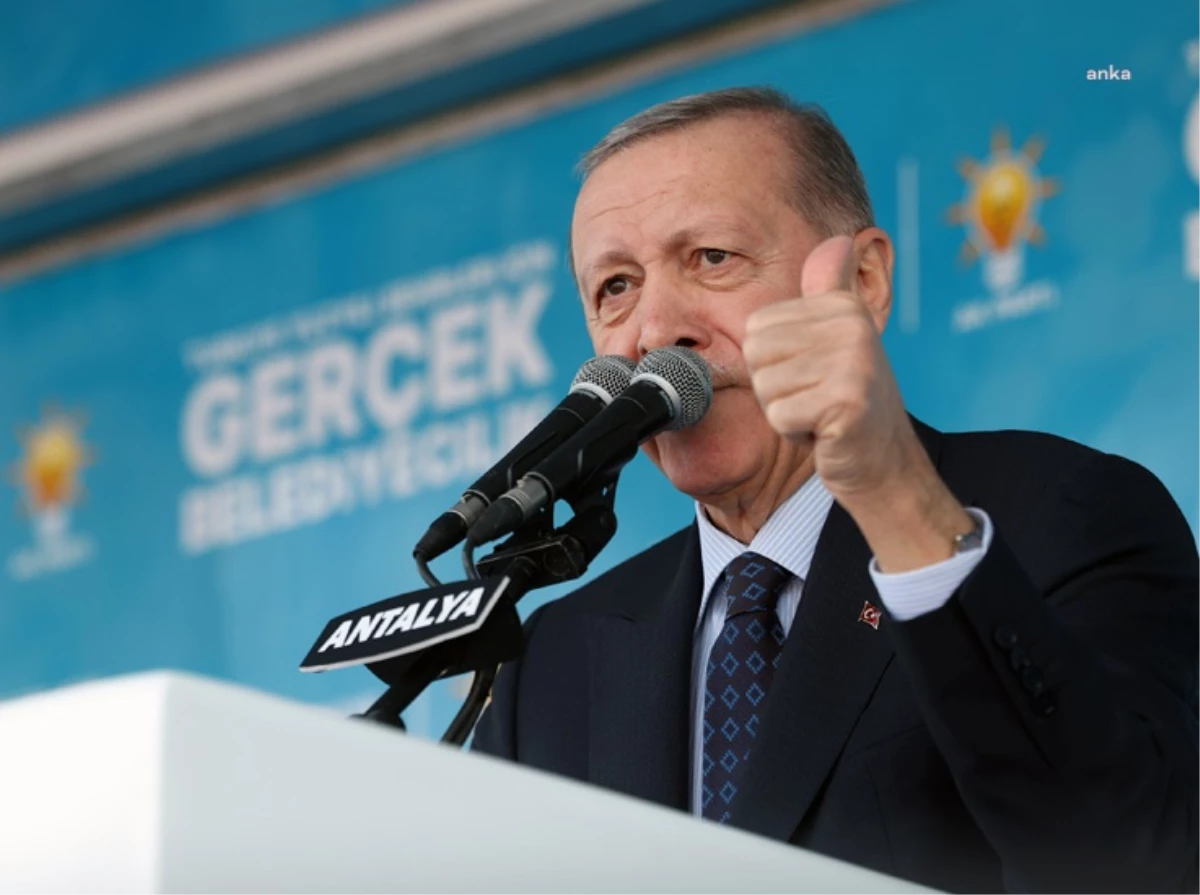 Antalya halkının, geçen mayıs ayındaki seçimlerde kendilerine Cumhurbaşkanlığında yüzde 43, milletvekilliğinde yüzde 41 oy verdiğini kaydeden Erdoğan, "Tabii bu oy oranları Antalya ile aramızdaki muhabbeti yansıtmaktan uzaktır. Hep birlikte 31 Mart'ta sandıkları Cumhur İttifakı oylarıyla patlatarak bunu telafi edeceğimize inanıyorum. Sizlerden bunun sözünü almak istiyorum. Yerel yönetimi de bize teslim ettiğinizde ülkeyi uçurmaya devam edecek miyiz? Bu ülkeyi çöpten, çamurdan, çukurdan çıkarmayanlara bir daha teslim edemeyiz. Antalya'nın dünya şehri vasfını her alanda güçlendirme sözümüzü yerine getireceğiz." dedi.