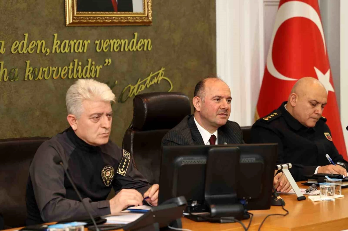 Vali Serdengeçti'nin sunumuyla gerçekleştirilen toplantıda; asayiş, trafik, siber suçlar, terör, organize suçlar, yasaklı maddelerle mücadele, tefecilik ve yasadışı kaçakçılık gibi konularda bilgilendirme yapıldı.