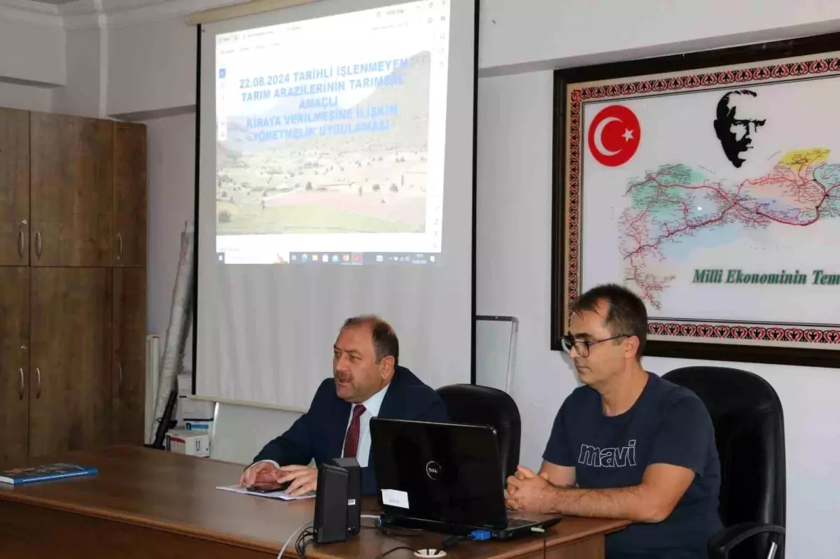 Mülkiyeti gerçek ve tüzel kişilere ait ve üst üste iki yıl süreyle işlenmeyen tarım arazileri, Tarım ve Orman Bakanlığı tarafından tarımsal amaçlı sezonluk olarak kiraya verilecek. Konuyla ilgili olarak Erzincan'da eğitimler başladı.