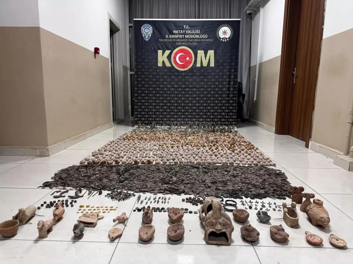 İl Emniyet Müdürlüğü ekipleri, ilçedeki bir evde yüklü miktarda tarihi eser bulunduğu bilgisini aldı. Harekete geçen ekipler adrese baskın düzenledi. Adreste yapılan aramada Roma, Bizans, Hitit, Antiochia ve Makedonya İmparatorluğu dönemlerine ait tarihi eser niteliği taşıyan 13 bin 604 sikke, 100 yüzük, 22 kolye ucu, 23 altın sikke, 2 altın yüzük, 22 gümüş sikke, 310 gözyaşı şişesi, 836 kandil, değişik ebat ve şekillerde 382 metal parça ele geçirildi. Adresinde bulunmayan şüphelinin yakalanması için çalışma başlatıldı.