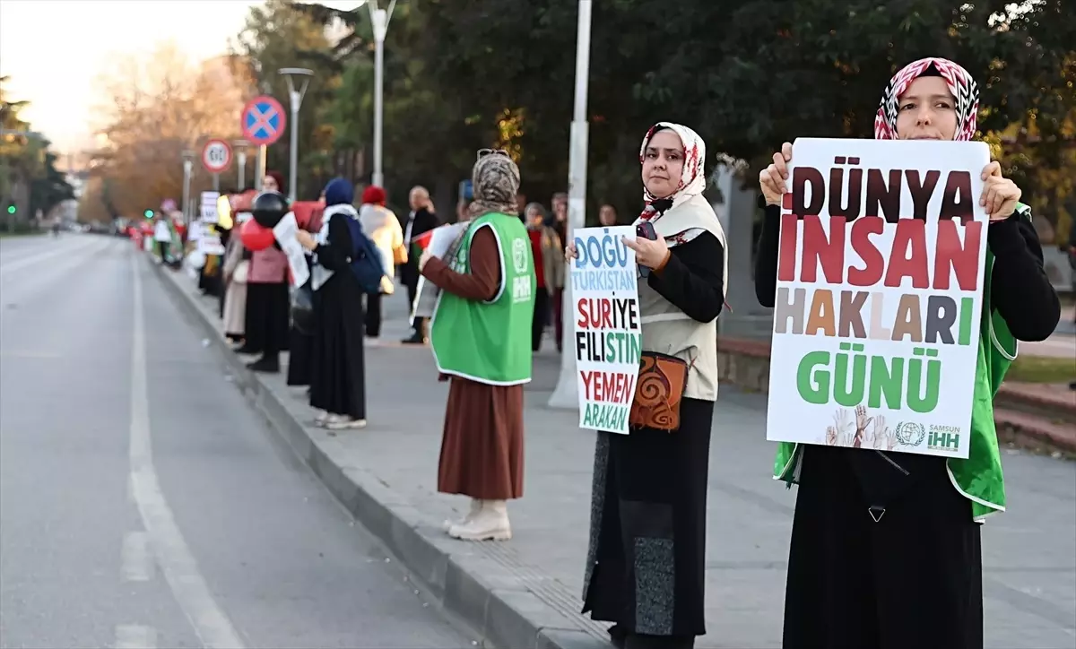 Samsun'da İnsan Hak ve Hürriyetleri İnsani Yardım Derneği (İHH) tarafından 10 Aralık Dünyaİnsan Hakları Günü'nde "Daha onurlu bir yaşam için" sloganıyla sessiz eylem gerçekleştirildi.