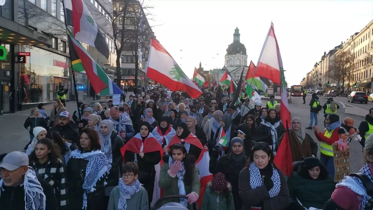 İsveç'in başkenti Stockholm'de yüzlerce gösterici, İsrail'in Gazze, Lübnan ve İran'a yönelik saldırılarını protesto etti.