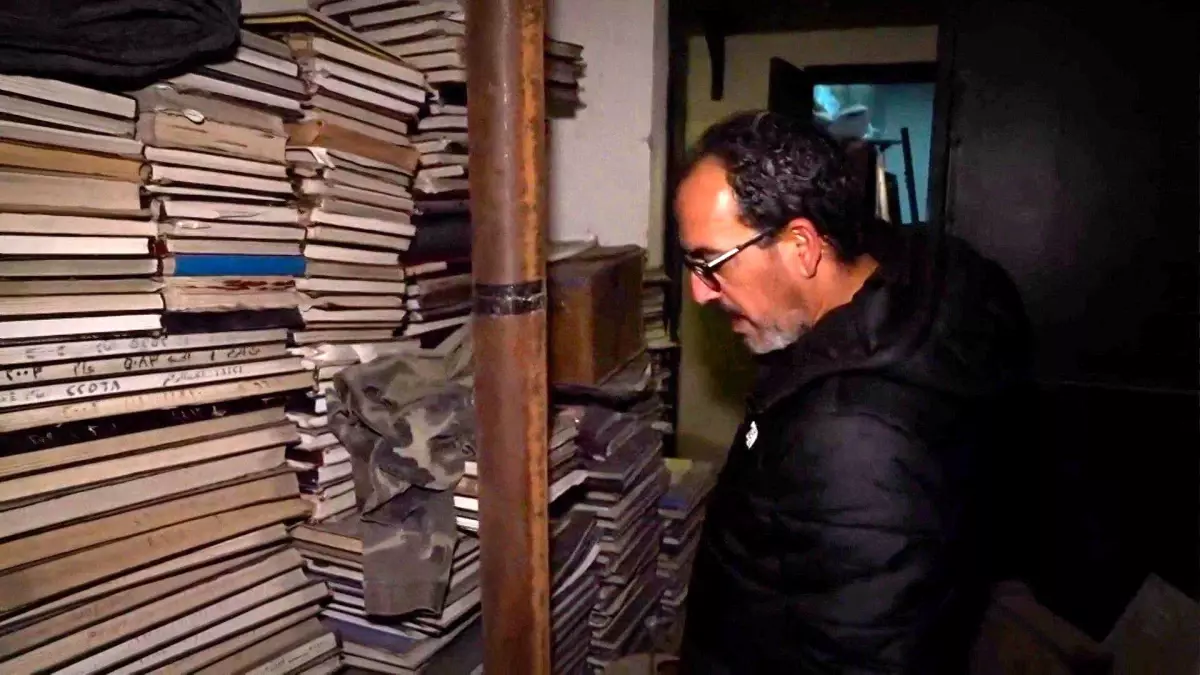 Dosyalar, bir odanın duvarlarını kaplayan metal dolaplara konulmuş. Bir başka oda da yerden tavana kadar uzanan sıra sıra defterler yığılı.