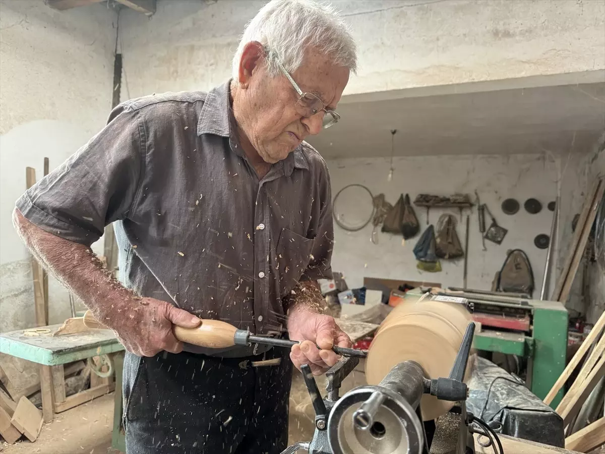 Trabzon’da 89 yaşındaki Mustafa Albayrak, evinin bahçesindeki atölyede ustasından kalan şerit testereyi de kullanarak ahşaptan ürünler yapıyor.