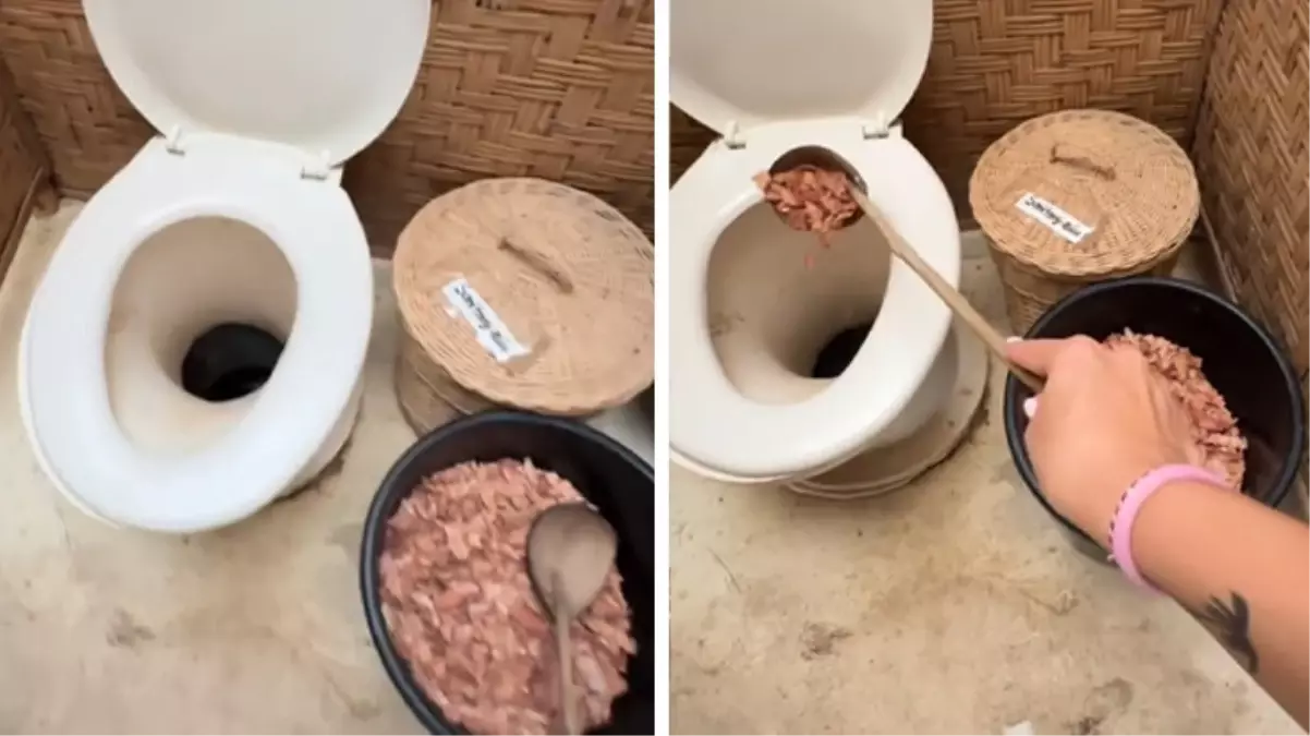 Kurutulmuş bitki yapraklarıyla üzeri kapatılan ‘sifonsuz tuvaletler’ sıfır su tüketimiyle doğayı korumaya yardımcı oluyor. Hem turistlerin ilgi odağı oluyor hem de doğaya sürdürülebilir bir iz bırakan bambu tuvalet kabinleri, yine bambudan yapılmış el yıkama yerleriyle dizayn ediliyor.