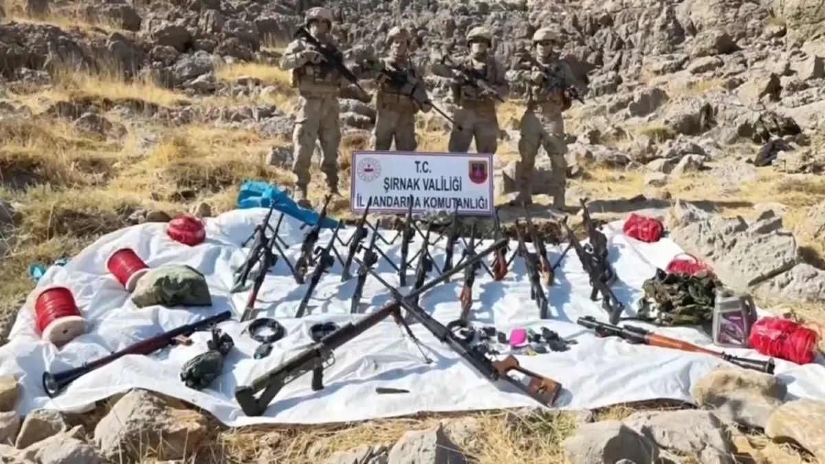 Ele geçirilen mühimmat ve silahlar arasında şunlar da yer alıyor: “17 adet makineli tüfek, 1 adet 12.7 mm uçaksavar, 2 adet RPG-7 roketatar, 1 adet Zagros Keskin Nişancı Tüfeği, 1 adet dragunov keskin nişancı tüfeği, 1 adet AK-47 piyade tüfeği, 5 adet TM 62 M anti tank mayını, 123 adet roketatar mühimmatı, 600 adet uçaksavar mühimmatı, 3.600 adet 7.62 mm PKMS Makineli tüfek mühimmatı, 5.700 adet hafif silah mühimmatı, 8 adet 81 mm havan mühimmatı, 500 metre saniyeli fitil ve EYP yapımında kullanılan çok sayıda malzeme”