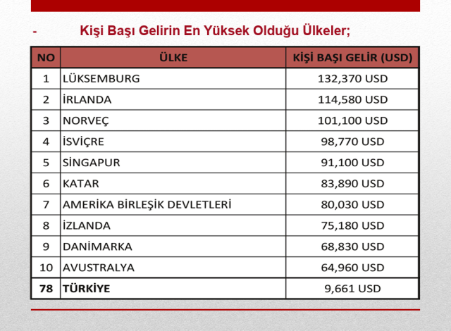 Gelişmiş ülkeleri sıraladım. Bu ülkelerde; Kişi başı gelir 60.000 USD ve üzerinde Bizde ise TÜİK verilerine göre kişi başı gelir 9.661 USD düzeyinde. Cari açık 1 Trilyon civarında.