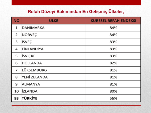 Refah düzeyi bakımından en gelişmiş ülkeler: