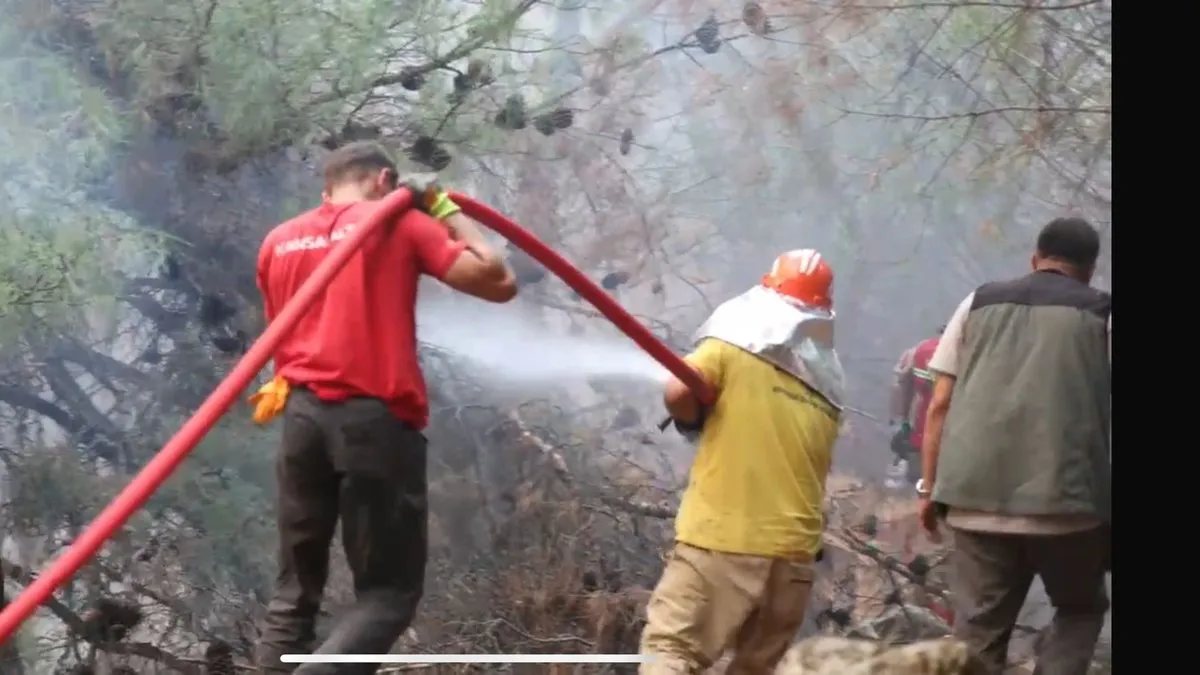 Bölgeden yükselen dumanları görenlerin ihbarıyla bölgeye İzmir Orman Bölge Müdürlüğü’ne ait 1 uçak, 3 helikopter, 7 arazöz, 2 su ikmal, 1 dozer ve 1 yer ekibi sevk edildi. İlk müdahalesi 16.55’te yapılan yangına müdahale, havadan ve karadan sürüyor.