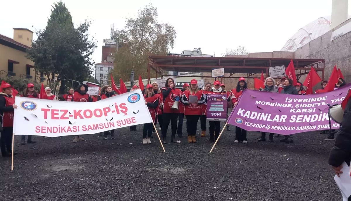 Tez-Koop-İş Sendikası Samsun Şubesi üyeleri, İlkadım ilçesinde bir avm önünde bir araya gelerek 25 Kasım Kadına Yönelik Şiddete Karşı Uluslararası Mücadele Günü kapsamında yürüyüş düzenledi.