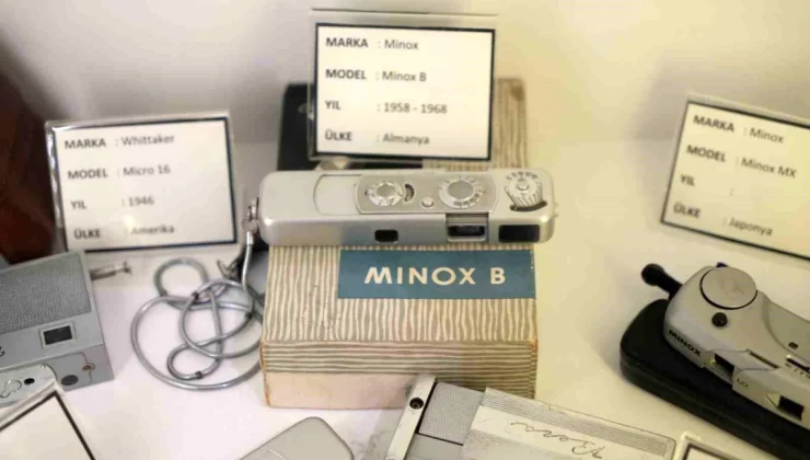 Saraç, camekanlı alan içerisinde casus makinelerin de sergilendiğini kaydederek, “James Bond’un 1969 yılındaki filminde kullandığı casus makinenin bir benzeri de müzede sergilenmektedir. Minyatür makineler bölümümüz var. Özellikle Soğuk Savaş döneminde casusların kullandığı makineler var. Aslında literatürde minyatür makine diye geçer ama halk tarafından casus makineler diye bilinir. 20’ye yakın minyatür casus makineler var. Hepsi gerçek, kişilerce kullanılmış makinelerdir” ifadelerini kullandı.