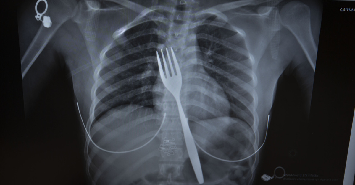 Dr. Edizsoy, bozuk para, toplu iğne ve çivi gibi küçük cisimlerin yutulduğuna dair vakaların sık görüldüğünü ancak çatal gibi büyük bir cismin yutulması vakasıyla çok nadir karşılaştıklarını söyledi.
